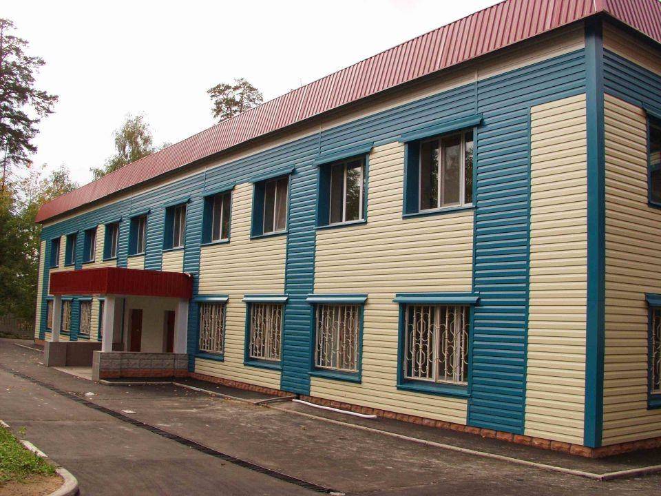Социальное учреждение, обшитое алюминиевым сайдингом двух цветов