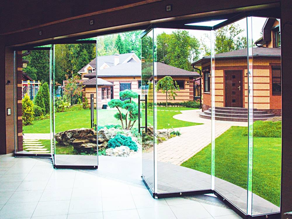 Конструкции типа «книжка» — вариант безрамного остекления беседок и террас коттеджей. Обеспечивают шикарный панорамный вид. Можно устанавливать на балконах, лоджиях. Предусматривает открытие всех створок — это принципиальное отличие от слайдера. Элементы смещаются в одну сторону «гармошкой».