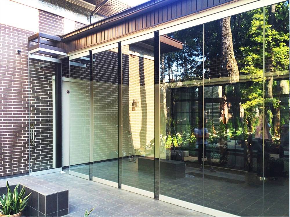 С помощью прозрачной «одежды» организуют не только бытовое оформление в многоэтажных домах. В коттеджах обустраивают уютные террасы, веранды, беседки, на которых даже при низкой температуре можно устроить чаепитие. Стеклом огораживают входные модули в торговых центрах, общественных зданиях.