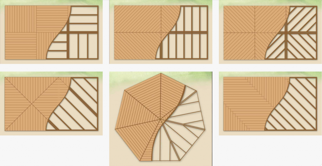 - икс-шаблон – доски в модулях укладывают не параллельно, а по диагонали;