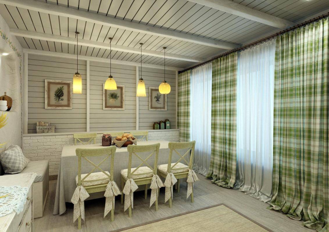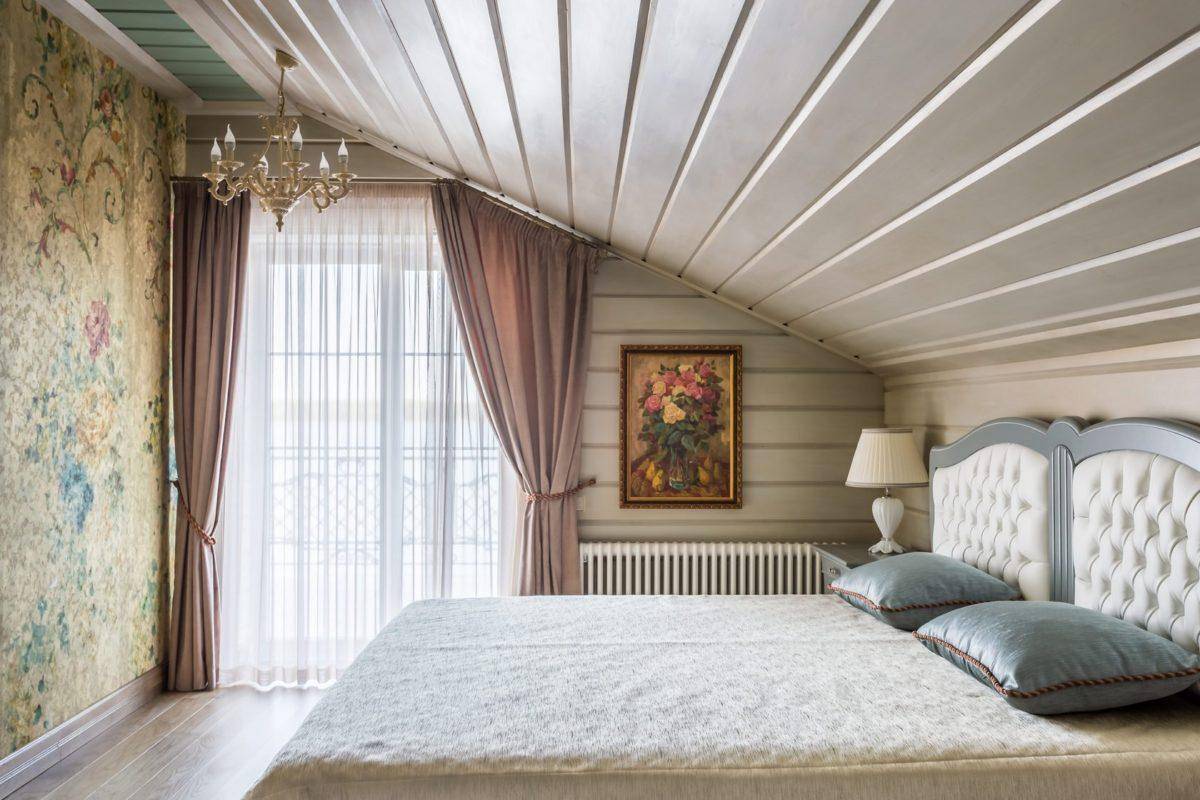 Для этого стиля подходят универсальные мотивы с переплетением нежных оттенков. Потолочное покрытие стоит выбирать полированное. Цвета максимально натуральные или белые. Выкладка простая. Вагонку часто используют классическую или евро.