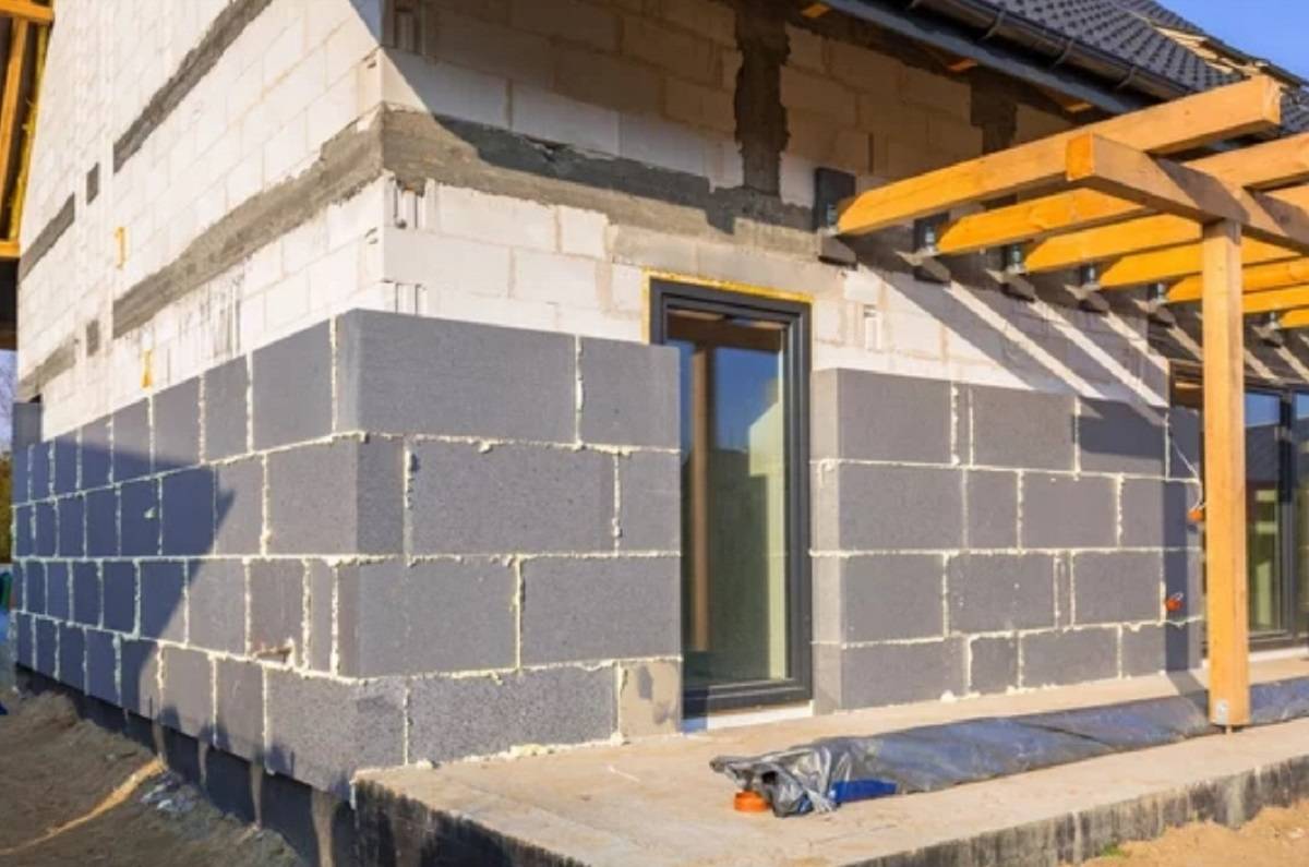Помимо облицовки, дом, построенный из пенобетонных блоков, обязательно должен иметь: