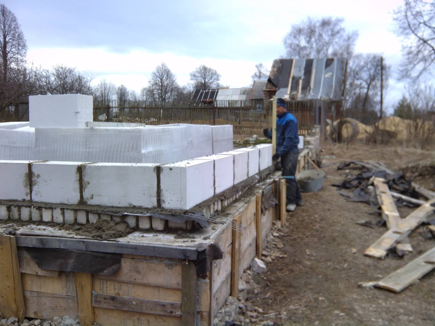 После того как залит фундамент будущего дома из газобетона, ленточный или свайный, можно приступать к возведению основных стен. Многие считают, что сначала необходимо обязательно сделать несколько рядов из обычного кирпича, а затем уже укладывать газосиликат или шлакоблок.