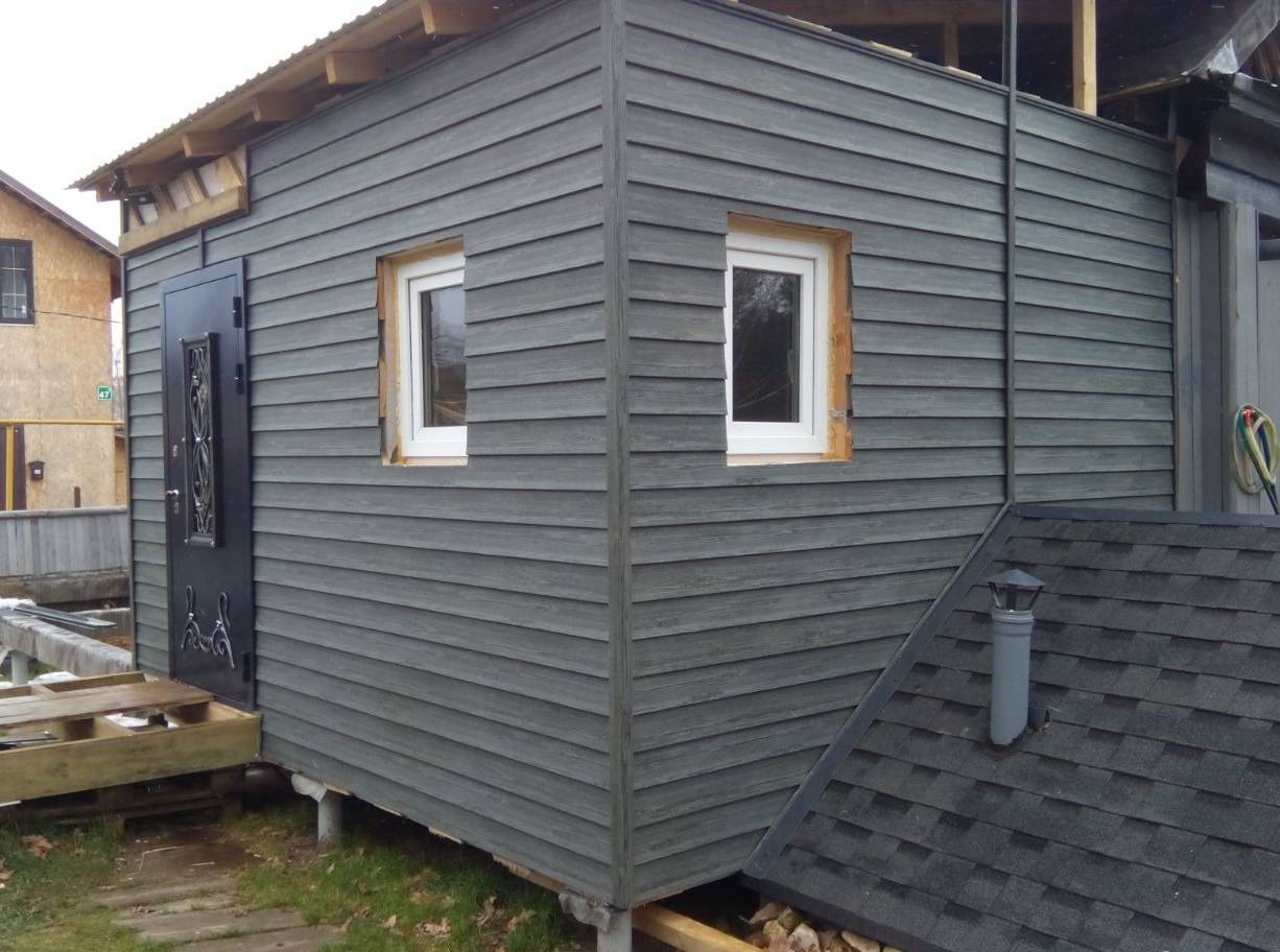 - Темным сайдингом можно выигрышно акцентировать углы и оконные или дверные проемы.