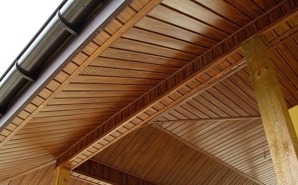 - Деревянный. Эстетичность дерева ценится приверженцами всего натурального. Но материал восприимчив к негативным факторам окружающей обстановки и нуждается в регулярном обновлении защитного слоя. Стоимость обшивки будет значительно выше виниловой, а палитра цвета ограничивается естественными оттенками древесины.