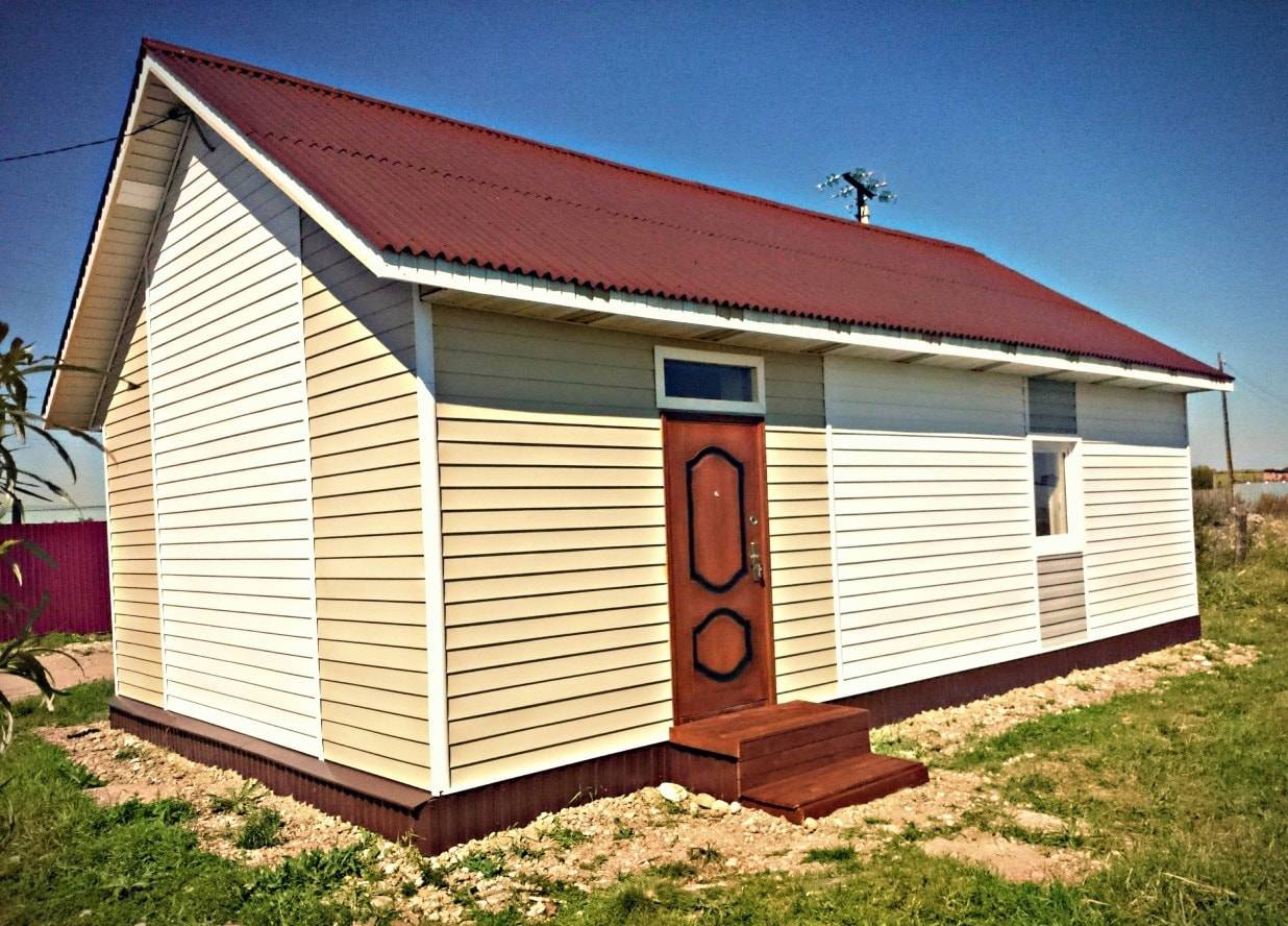 - Дом, конструктивно простой, без архитектурных изысков по типу шведского домика, лучше оформить яркими панелями: красный сайдинг и планки над дверью и окнами цвета сливки.