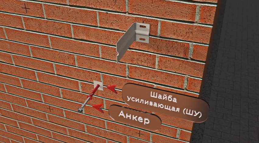 Шаг 3. Устанавливают кронштейны с помощью дюбелей.