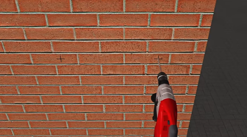 Шаг 2. Согласно разметке, высверливают отверстия в стене. Они необходимы для крепления кронштейнов, шаг между которыми не должен превышать 50 см.