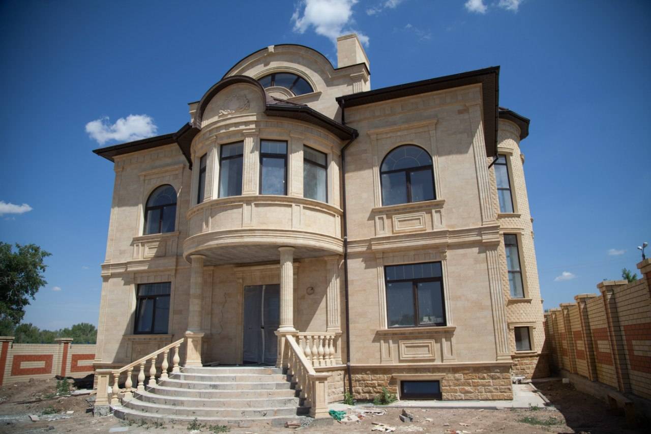 Роскошный особняк облицован дагестанским камнем. В отделке цоколя – доломитВеличественный двухэтажный дом с фасадом и элементами декора из белого дагестанского известняка. Дом с отделкой светло-бежевым ракушечником смотрится дорого и стильноДом в стиле неоклассицизма. Материал облицовки – песчаник. Элементы декора — известнякДом с мраморным фасадом. Даже в современном исполнении здание напоминает дворец