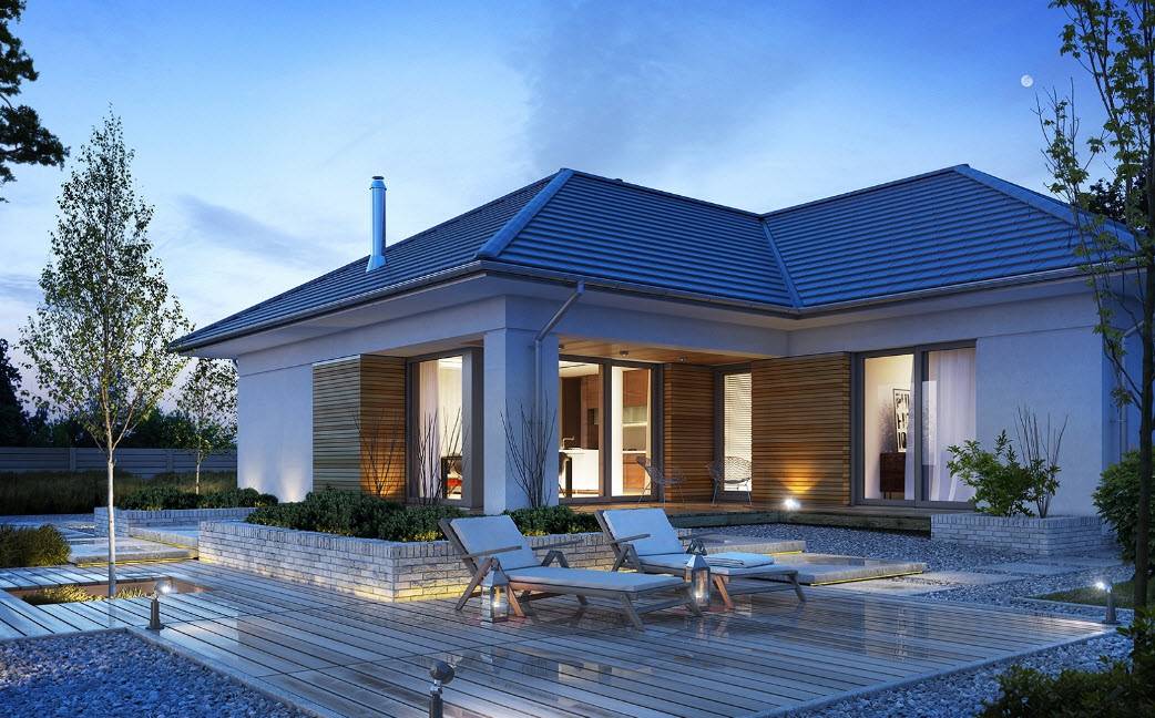 - белый цвет фасада можно дополнить абсолютно любой кровлей;