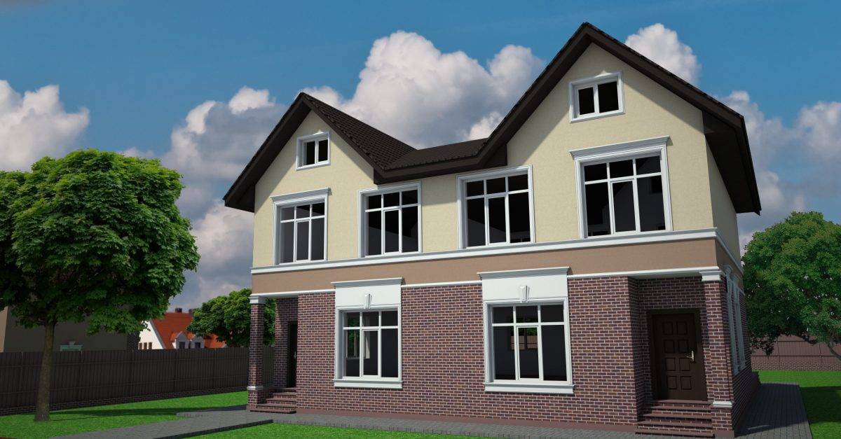 Пример максимально бюджетного оформления фасад частного дома на двух хозяев – дуплекса.