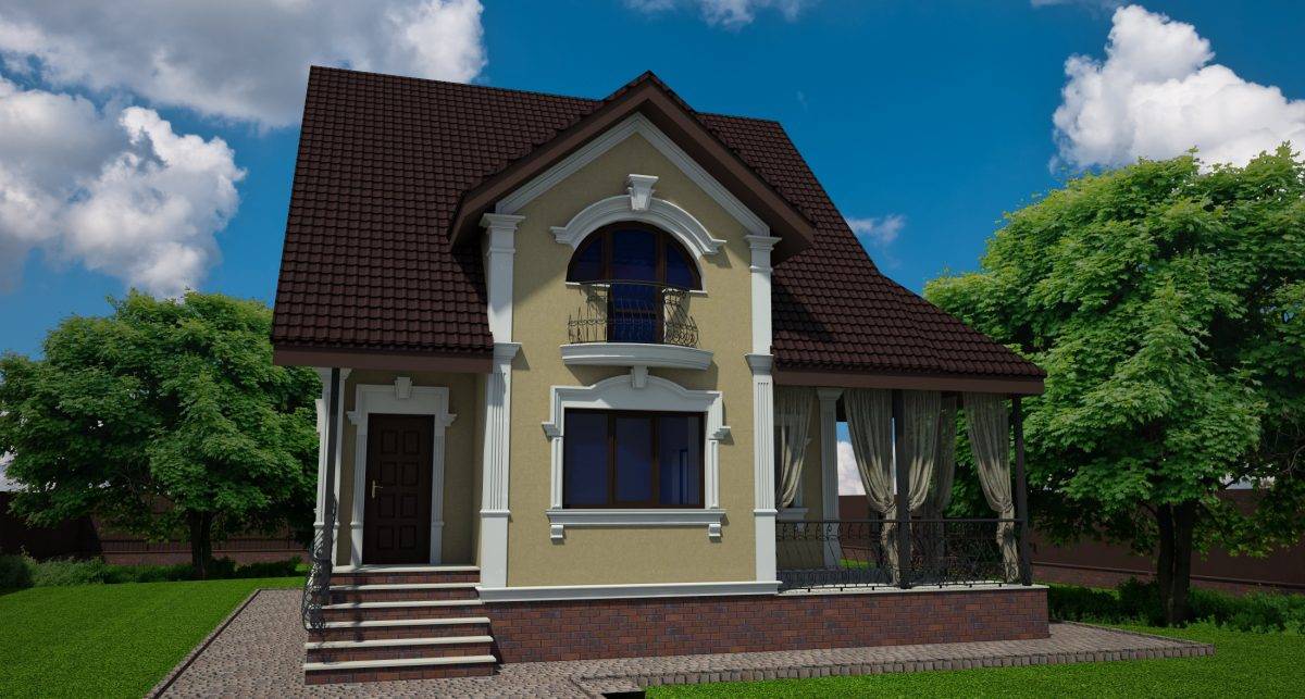 Замок завершает картину. На углах дома предложены классические пилястры с канелюрами.