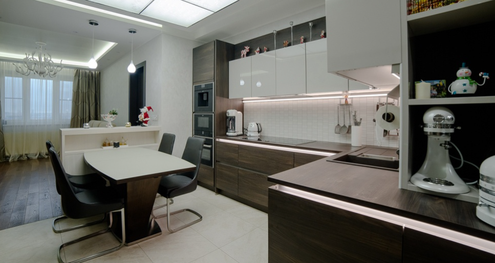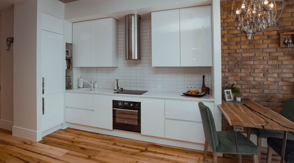 Если вы часто открываете окна и в районе, где вы живете, много пыльного воздуха, стоит приобрести белую глянцевую кухню. Темные блестящие покрытия даже при малейшем попадании пыли могут выглядеть совершенно неухоженными, а влажная уборка окажется такой же трудоемкой, как мытье окон или зеркал