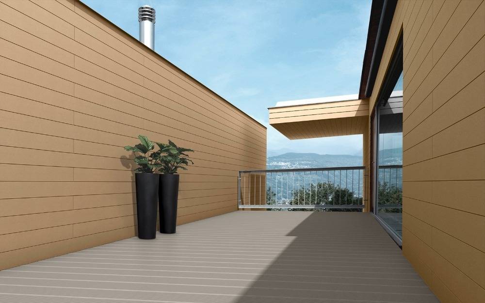 Сравнительно новый в наших широтах материал. Представляет собой фасадную доску со скошенными или скругленными боковыми гранями. Изготовляется из сосны, лиственницы или древесно-полимерных материалов. Ширина доски находится в диапазоне 70 – 140 мм при толщине 15 – 20 мм, угол скоса граней — 45 – 700. Монтируется на специальных креплениях в шип или внахлест.