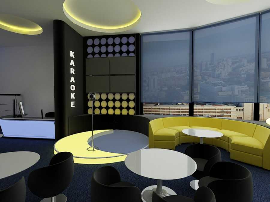 Предусматривает сцену и караоке-систему. В интерьер должно быть заложено место для диджея.