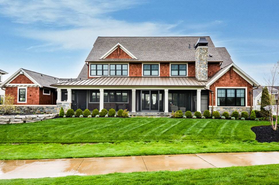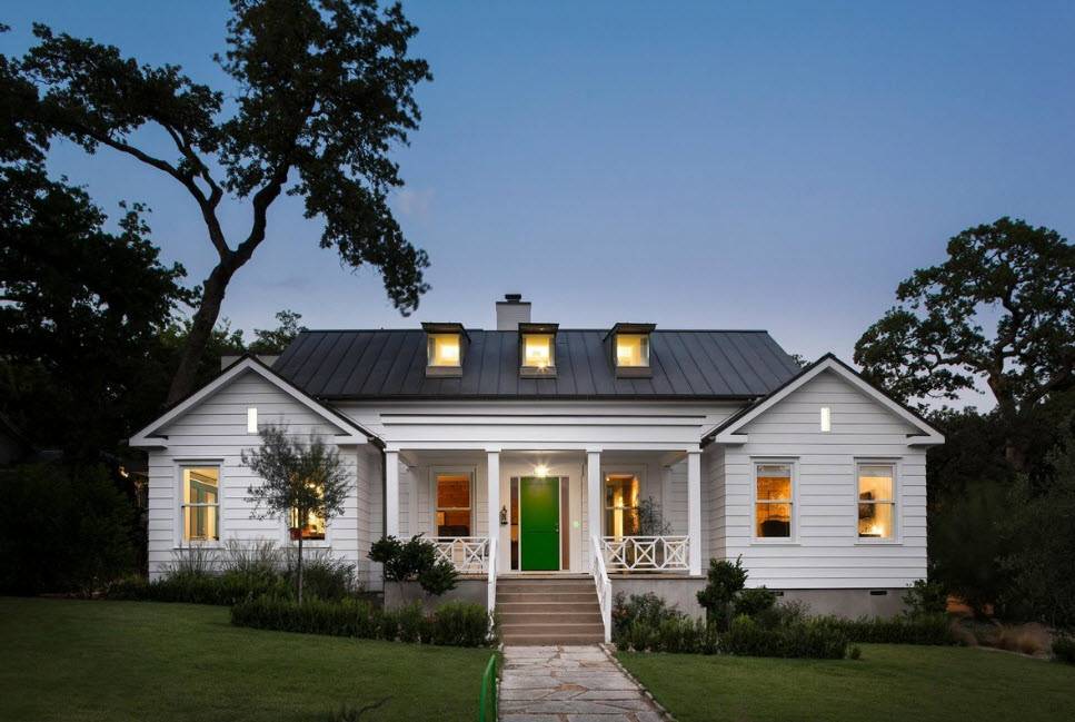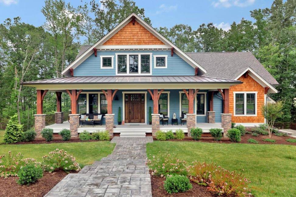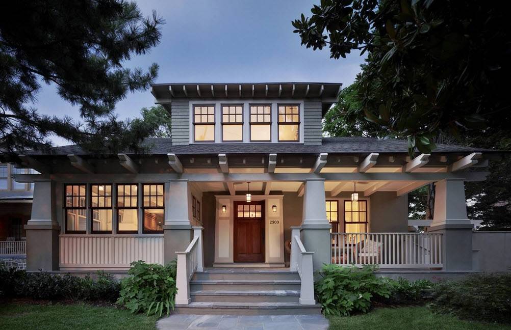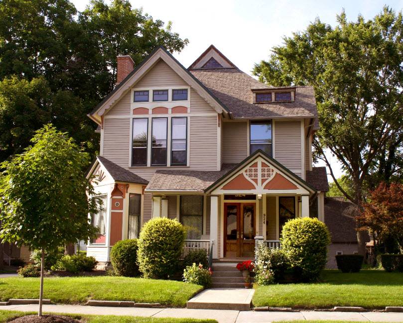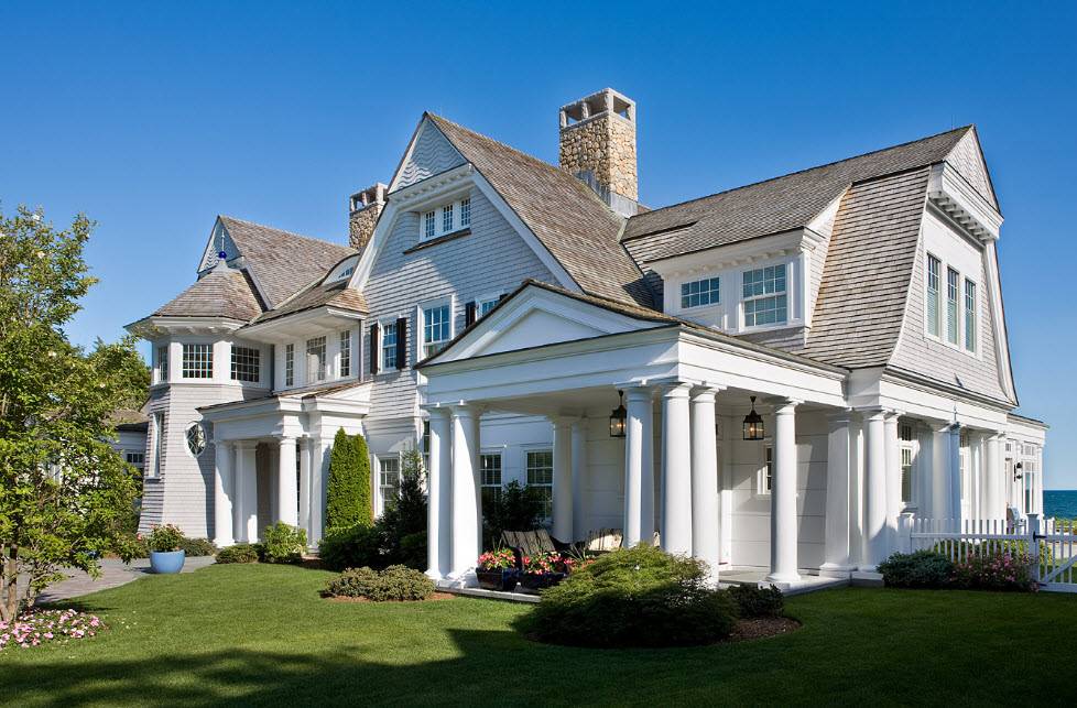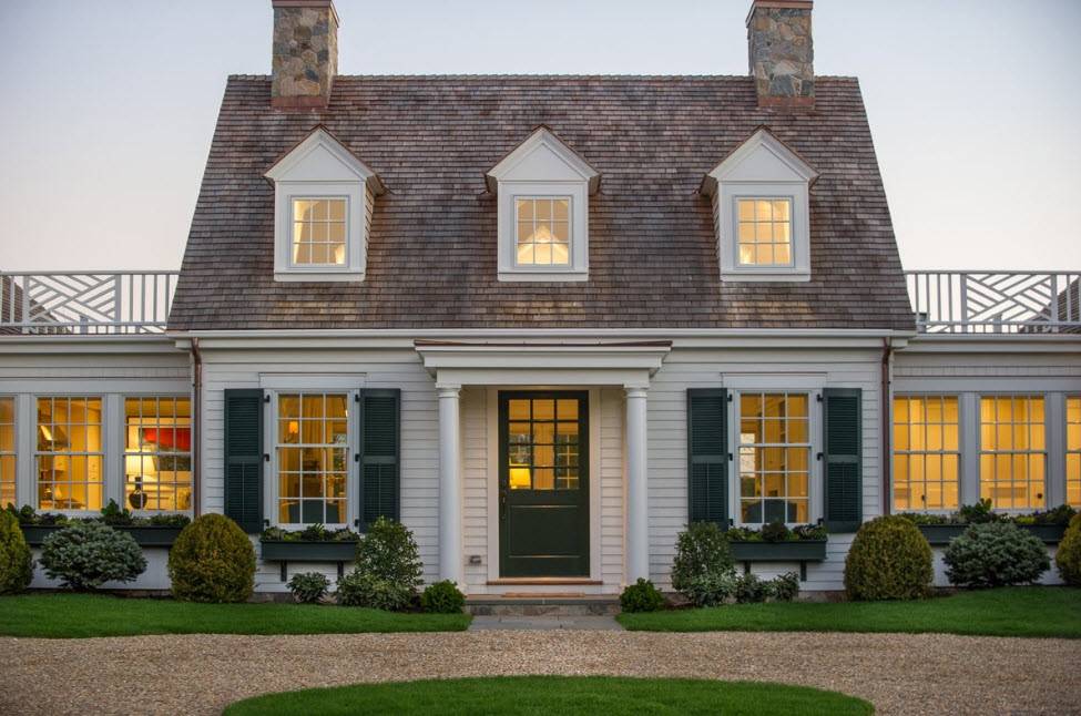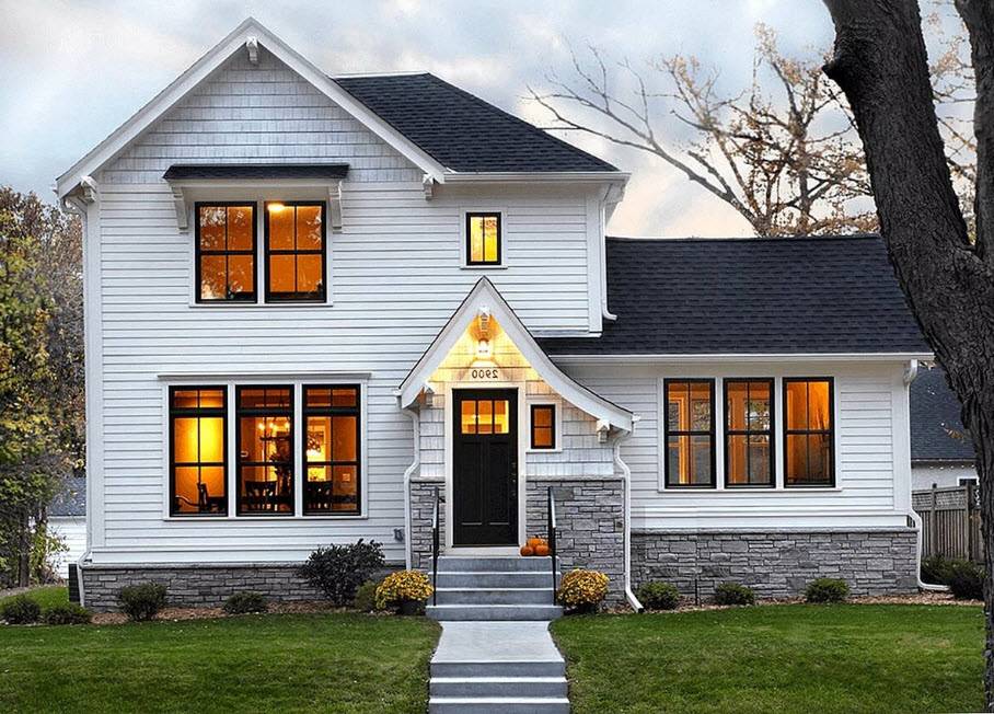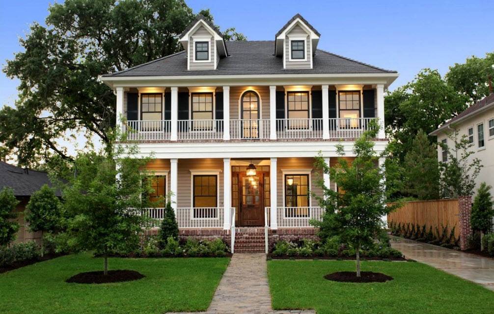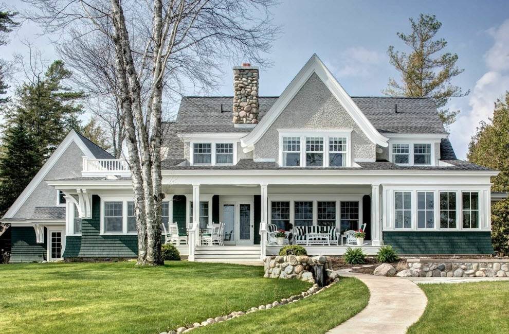 Строительство загородных коттеджей в американском архитектурном стиле ведется с использованием любых материалов – кирпича, бетона, бруса, бревна или камня. Но в классическом американском исполнении дома делают с применением каркасных технологий. Каркасные дома быстро возводятся, стоят недорого, отличаются комфортом и высокой теплоэффективностью. В оформлении экстерьера согласно принципам американского стиля преобладают спокойные, нейтральные оттенки, прямые и строгие линии. Для отделки фасадов дома применяют искусственную штукатурку или деревянную обшивку. Можно комбинировать оба варианта, внося в оформление экстерьера разнообразие. Также часто используют фасадный клинкерный кирпич, фасадные панели, сайдинг и блок-хаус. Если дом выполнен из клееного бруса, дополнительная наружная и внутренняя отделка ему не понадобится, поскольку клееный брус смотрится эффектно и привлекательно сам по себе. Цоколь дома облицовывают плиткой или кирпичом.