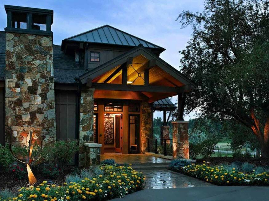 Стиль саутвестерн. Это — смесь индейских и ковбойских жилищ. Под стать двум этим стилям обычно и внутренний интерьер, который характерен всяческими индейскими вышивками и узорами напополам с ковбойской кожаной мебелью. Фасады таких домов могут быть каменными, а могут — оштукатуренными.