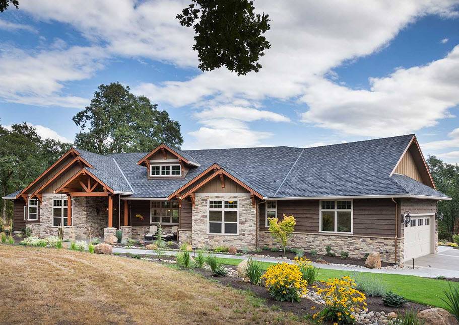 В самых простых и популярных домах крыши двух свисающие с покрытием черепицы. В особняках не редкость встретить вальмовые крыши или со сложной конфигурацией.
