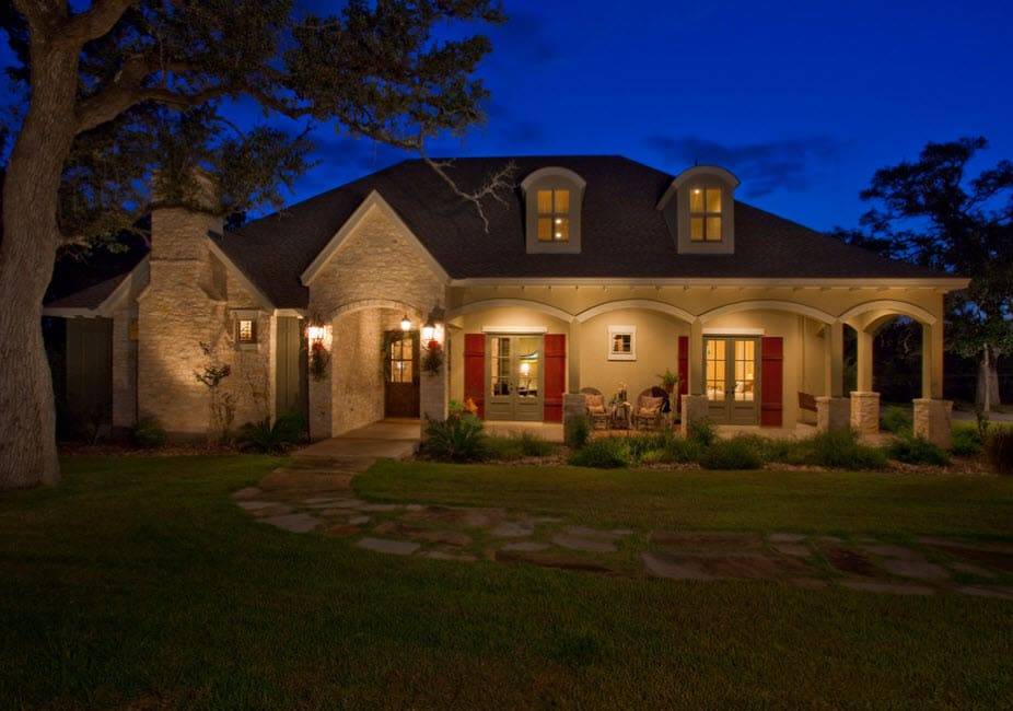 Каждая зона дома в данном стиле подчеркивается отдельным осветительным прибором. Настенные светильники и бра прикрепляются над кроватью в спальне или рядом с диваном и креслами в гостиной.