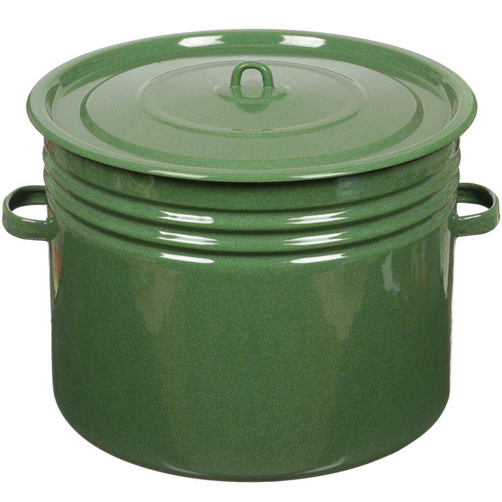 Большая модель из бакстали с эмалированным покрытием станет незаменимым помощником, как в бытовых, так и профессиональных условиях использования. Вмещает 40 л, имеет высоту 350 мм и диаметр 430 мм. Комплектуется крышкой, может использоваться на индукционных плитах.