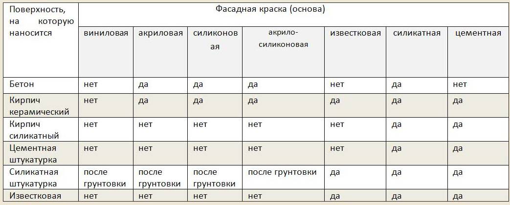 Выбор краски для фасада по штукатурке начинаем с определения материала подложки – основания, на которое будем наносить краску: будет ли эта штукатурка цементно – песчаной, цементно – известковой (минеральной) или это будет полимерцементный состав? Многие акриловые и силиконовые составы не совместимы с минеральными штукатурками. Производители указывают в паспорте продукта вид основания, для которого предназначена краска.