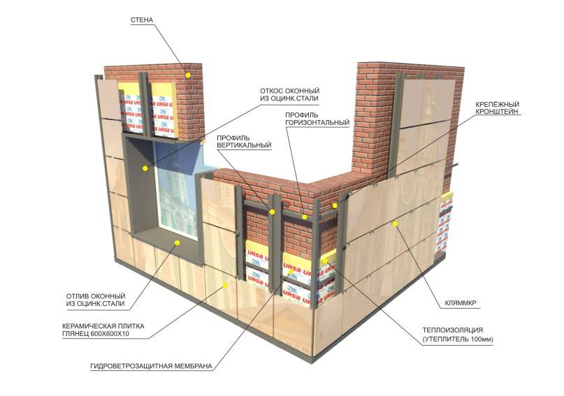 В одном из наших материалов мы уже рассматривали комплектующие и устройство фасадов из керамогранита. При необходимости можете ознакомиться со статьей.