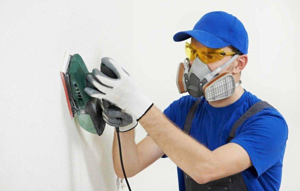- После застывания шпаклевки требуется зашлифовать поверхности. Работы выполняются с помощью листов наждачной бумаги. При шлифовальных работах обязательно использование респиратора и защитных перчаток.