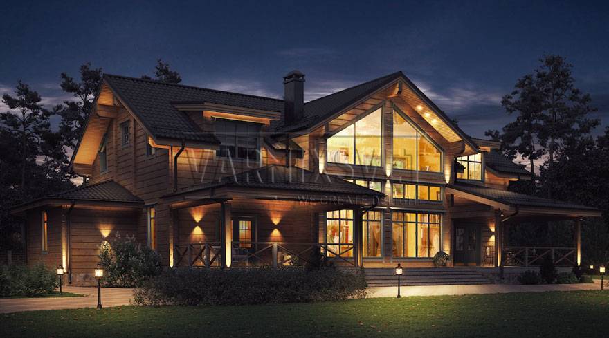 Обратите внимание, что для оформления освещения фасада архитектурного типа зданий за городом можно применять не каждый вид подсветки. Неприемлемым будет считаться обустройство заливающего освещения – загородные дома обычно очень низкие, а указанный вариант будет предназначен для более высоких зданий