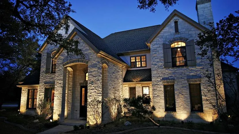 Обычно в качестве такой подсветки выступают самые обыкновенные прожекторы направленного света. В зависимости установленной там лампы они могут давать свет разного цвета и интенсивности. Направив такой прожектор на то же окно, можно получить эффект красивой подсветки этого элемента конструкции здания. Если красиво скомбинировать несколько локальных источников света, что чаще всего и делается, то можно получить очень красивое оформление. Выделив в здании с помощью красивой подсветки окна, двери, возможно балконы или другие элементы, возможно получить самый необычный вид и визуальное оформление своего дома.