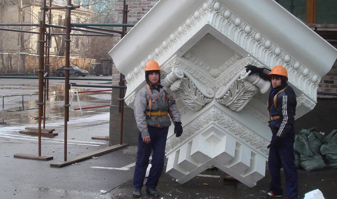 С другой стороны, сейчас очень активно рекламируется такой дешевый материал как полиуретан (а также, пенопласт и пенополистирол). Это так, но получается чисто, как в народной мудрости: дешево и сердито. Дело в том, что, несмотря на все уверения производителей, не такой уже полиуретановый декор и вечный – проверить еще никому не удалось, так как на строительном рынке он появился не так давно. А вот тот факт, что через несколько лет он теряет свой презентабельный внешний вид и требует покраски, мы можем видеть на зданиях, отреставрированных какой-то десяток лет назад. К тому же, полиуретановый фасадный декор иногда просто отваливается со своего «вечного» места. Причина тут и в халтурной работе отделочников, но чаще – в некачественных клеевых составах, которые все без исключения имеют ограниченный срок эксплуатации. Существует еще несколько причин, почему наша компания сразу отказалась от полиуретана в изготовлении элементов фасадного декора.