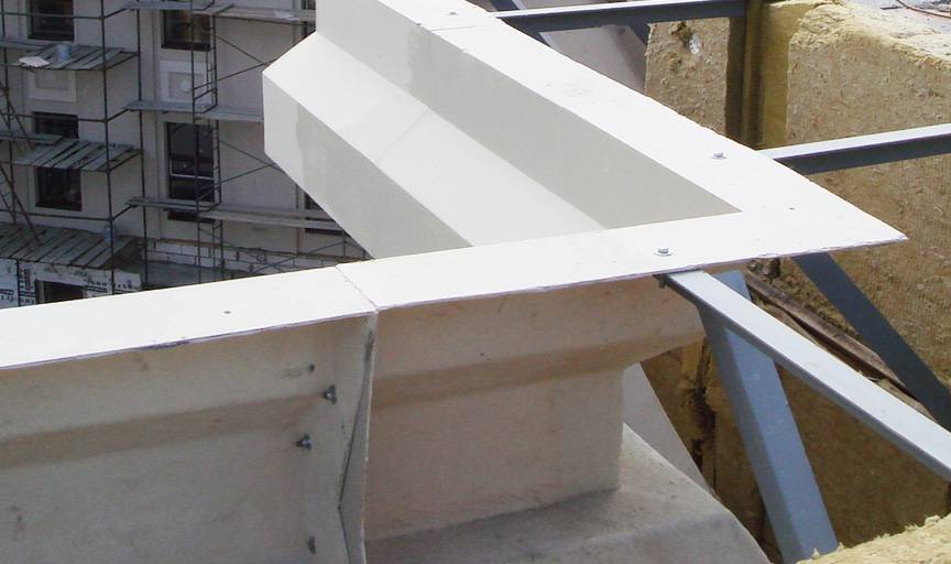 Конкуренцию металлу на больших зданиях составляют стеклопластиковые декоры, которые крепят за закладные выпуски в декоре, однако они чуть более пожароопасны.