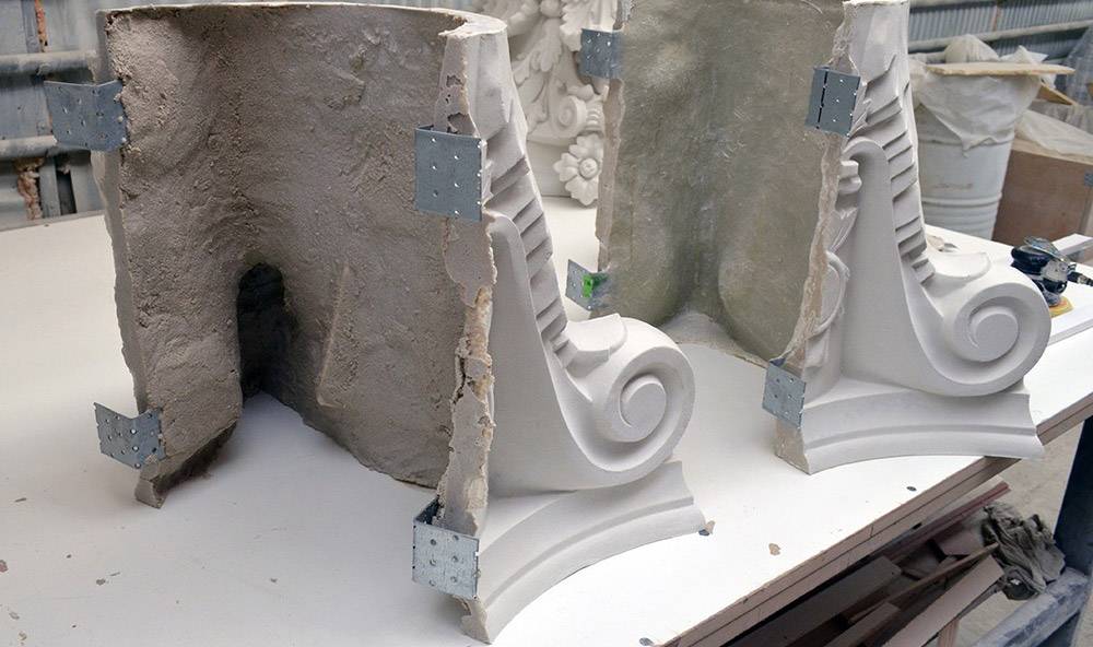 Есть производители, которые армируют пустотелые декоры с помощью стеклохолста, это позволяет делать стенки изделия более тонкими и экономить дорогие полимеры. Такое армирование похоже на технологию стеклопластиковых декоров.