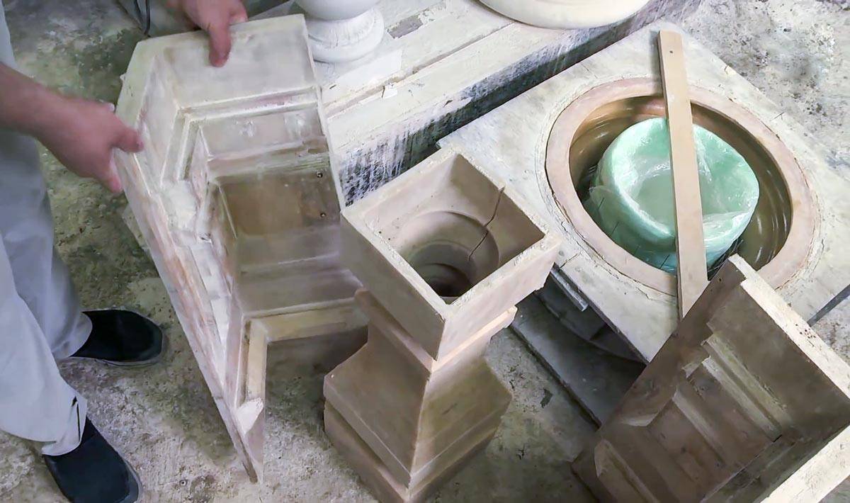 Оборудование позволяет воссоздать точную копию модели, которая после завершения резки покрывается защитным составом. Иногда в ходе изготовления используют армирующую сетку, увеличивающую прочностные характеристики. В качестве финишного покрытия применяют цементно-клеевой слой, толщиной от 1 до 6 мм, в котором могут быть разные наполнители. Именно он защищает готовую деталь от ультрафиолета, воды и колебаний температуры.