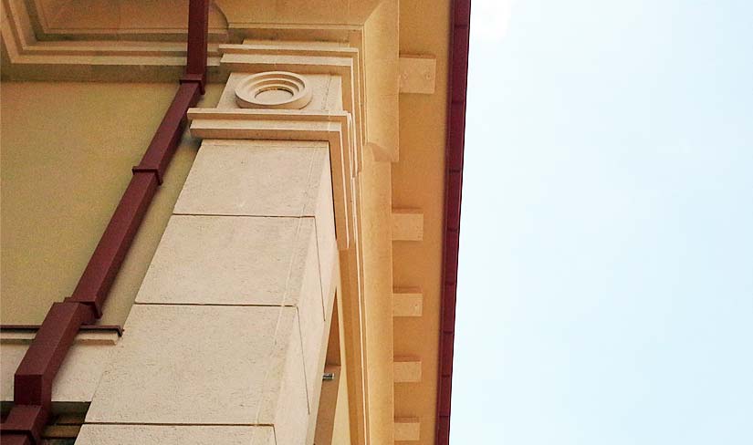 - небольшой вес. Здесь отметим, что в последнее время все чаще фасады утепляют используя минеральную вату или пенопластовые плиты. Это выдвигает требование к отделке, а заодно и к лепнине для фасада – она должна быть легкой. В этом плане все в порядке – особой нагрузки она не создает, да и транспортировать ее проще;