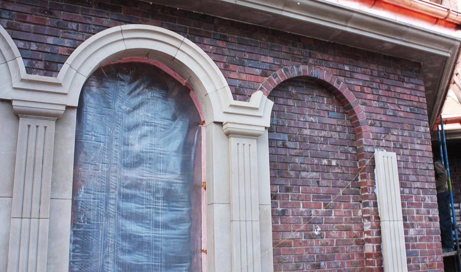 Декоративный фасад здания с утеплением фасада пенополиуретановым утеплителем, где отделка декора произведена своими руками с применением пенопласта и покрытием, только усиливает и без того яркие впечатления, особенно если у него имеется декоративный архивольт, который обрамляет арочный проем.