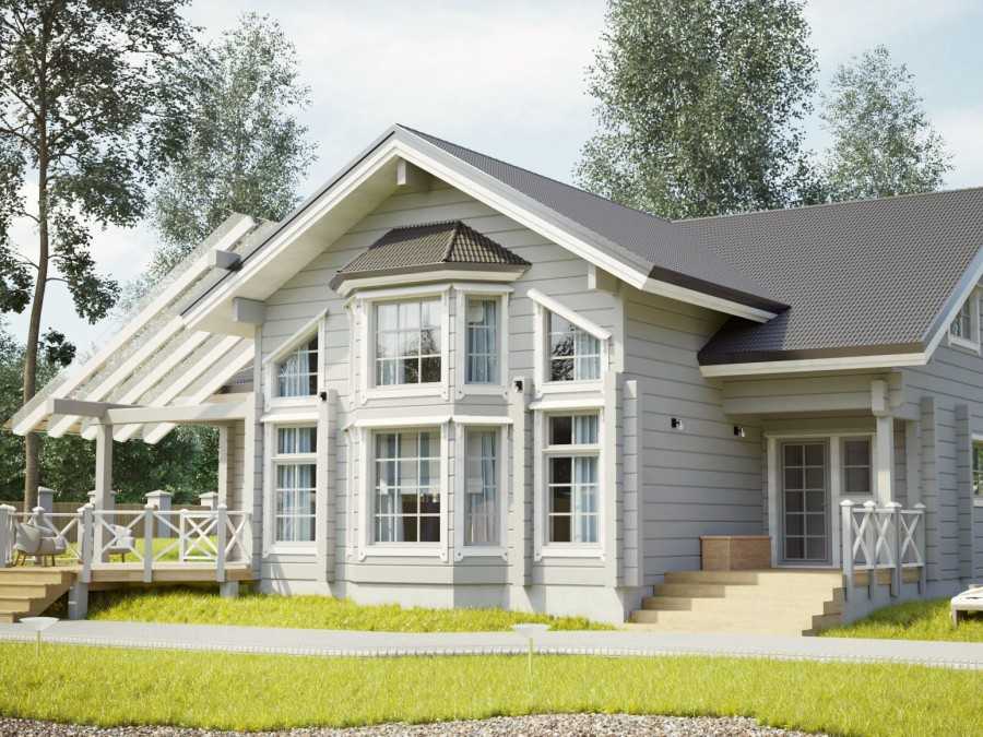 Когда говорят про деревенский дом «как у бабушки», обычно имеют в виду постройку из дерева. Ее можно покрасить, облицевать и оформить различными декоративными элементами.