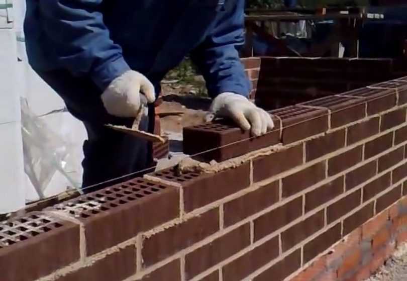 - Кладку ведут по шнуру, контролируя ровность строительным уровнем.