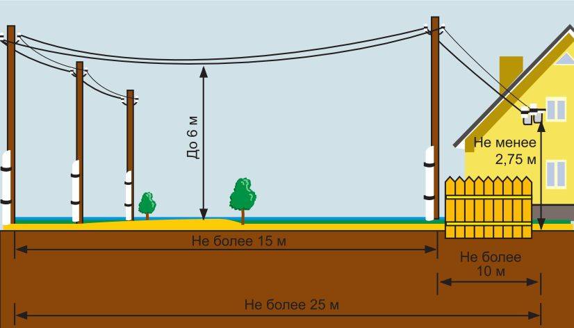 - Опора ВЛ должна быть установлена не дальше, чем на 25 м от фасада здания.