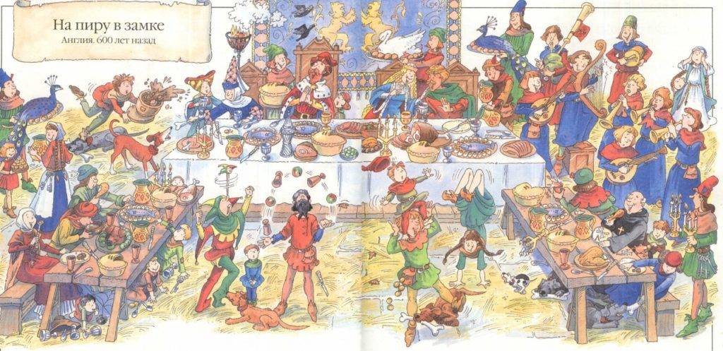 Подготовка к пиру начиналась за неделю. Закупались продукты, слуги на кухне (иногда их было несколько сот) спешно придумывали рецепты блюд. В большом зале ставили опоры, на них настилали крепкие доски – вот стол и готов.