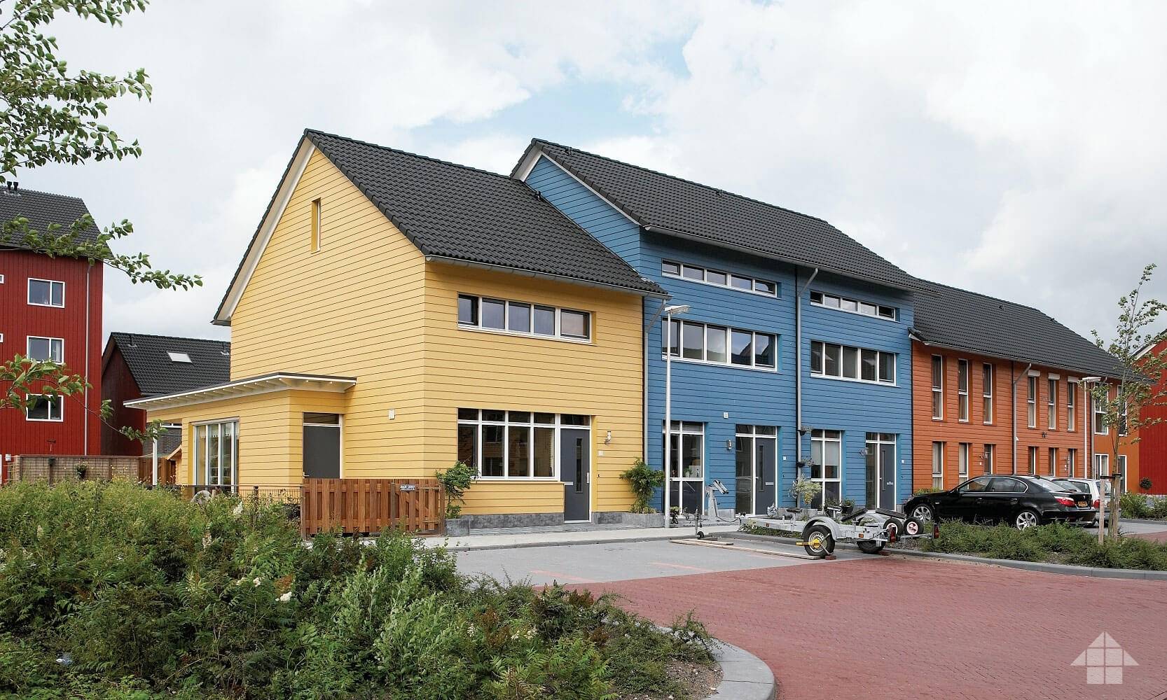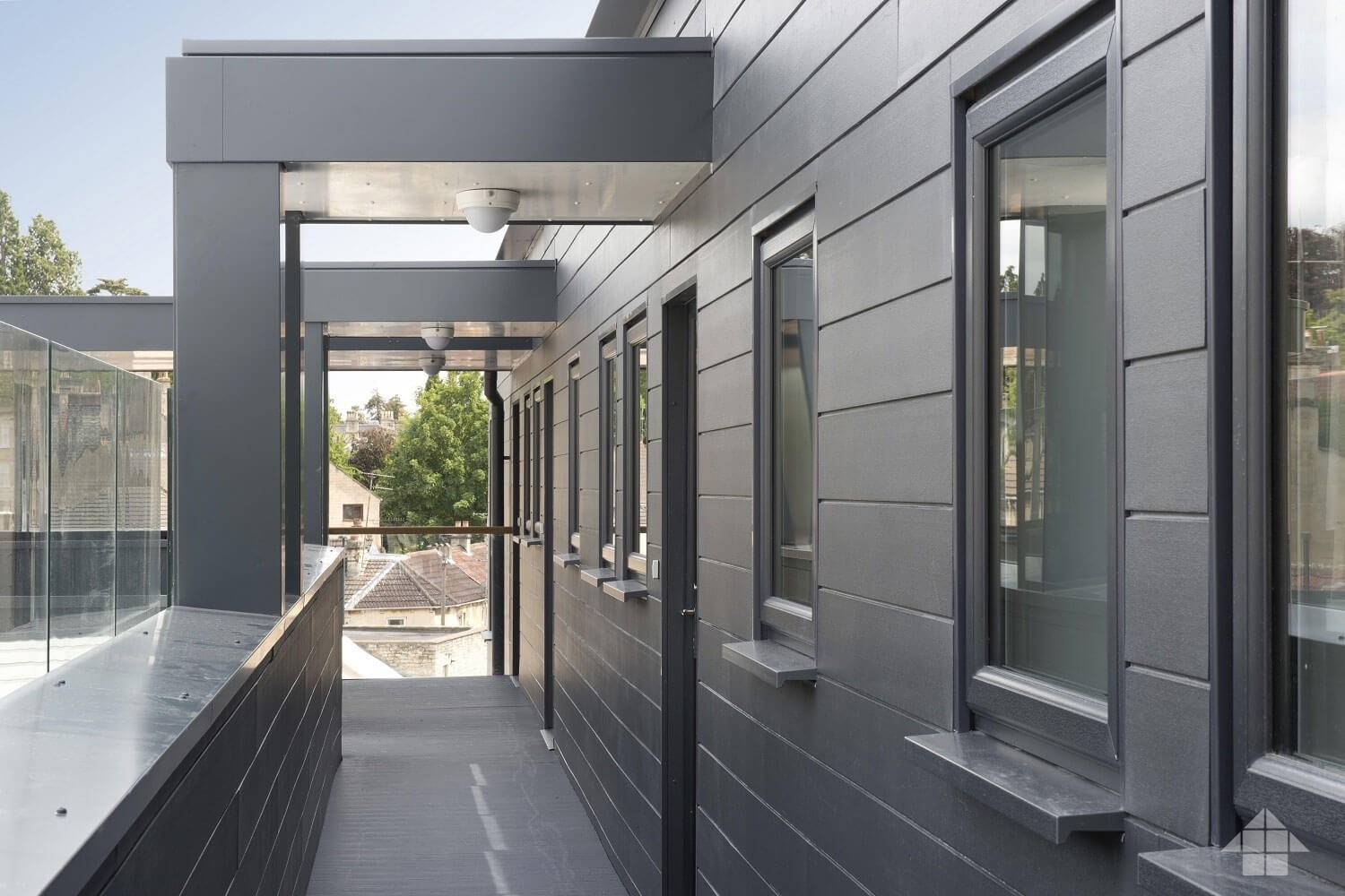 При строительстве многоэтажных домов фиброцементный сайдинг выступает в качестве декоративного фасадного элемента.
