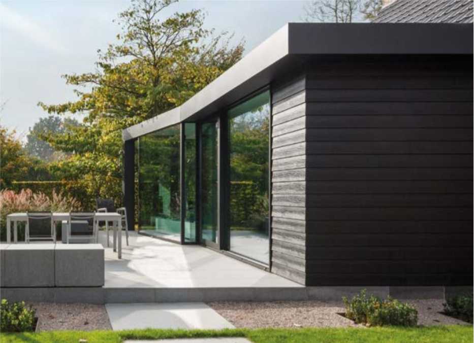 Разнообразие фактур и расцветок фиброцементных элементов поражает. Яркие оттенки — редкость для фиброцемента. В основном окраска пастельных тонов, но представлена широкой палитрой. «Деревянные» панели передают эффект натурального дерева вплоть до ощущения теплоты, а плиты, покрытые каменной крошкой, выглядят стильно и напоминают натуральный камень. Кроме того, такой фасад более устойчив к ударам и другим физическим воздействиям.