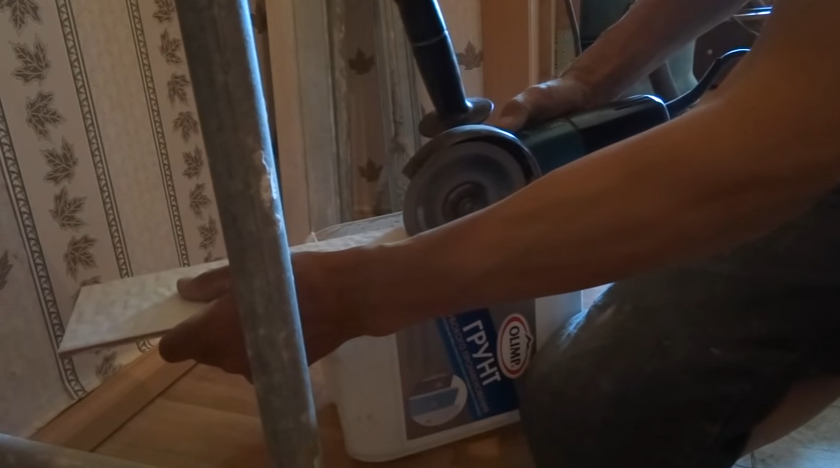 - Очень аккуратно подровняйте болгаркой край среза. Наклоните диск под максимально возможным углом, не прижимайте его сильно, снимайте неровности постепенно.