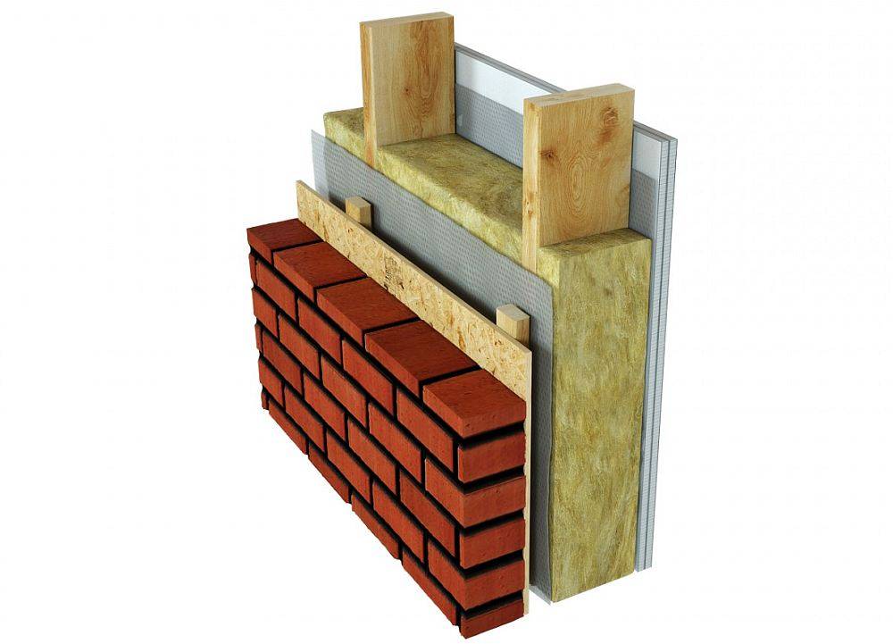 Между утепленной стеной и кирпичной кладкой должно сохраняться расстояние не менее 60 миллиметров. Этот вентиляционный зазор необходим для выветривания пара, что избавит от конденсата и разрушения дерева с утеплителем. Зазор может быть меньше только на домах из бревен, если же он построен из брусьев или по каркасному методу, минимальные 6 см нужны обязательно.