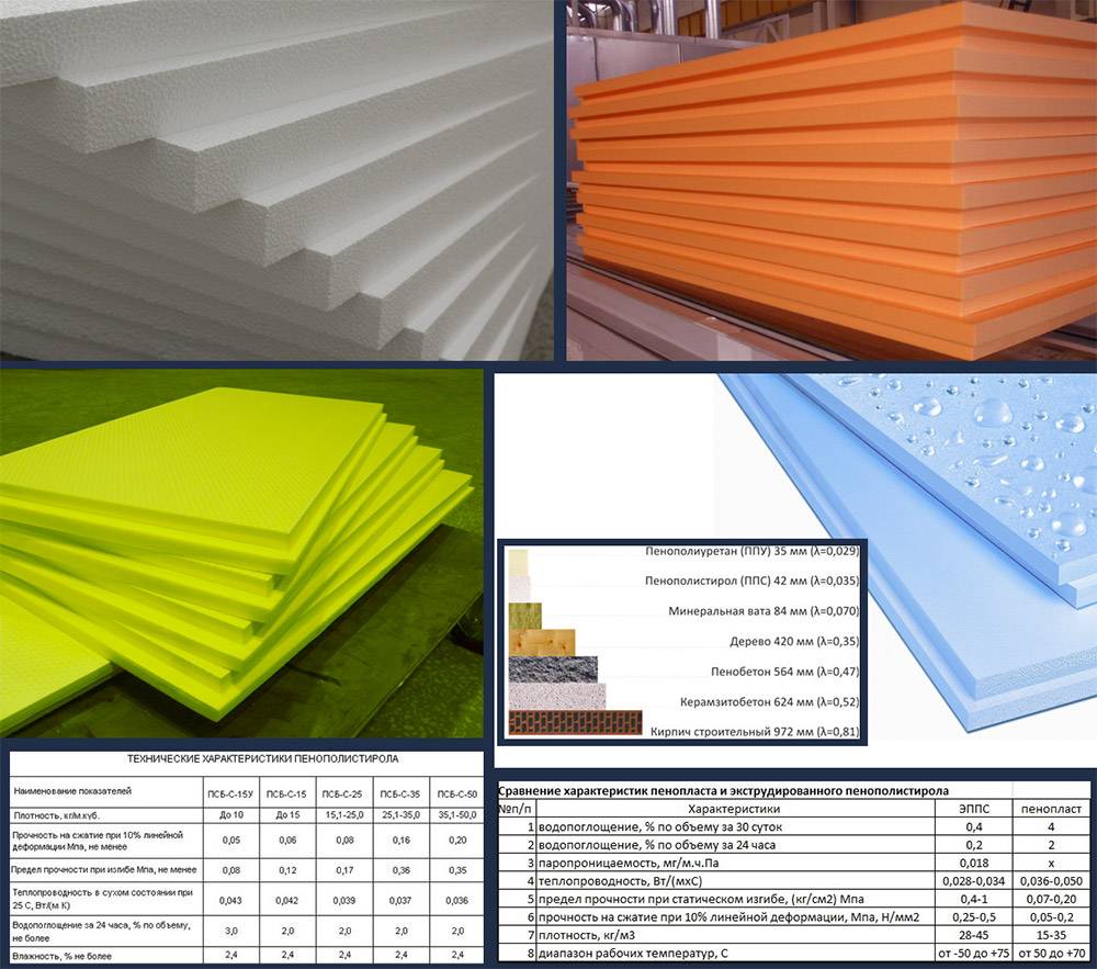 Отдельно необходимо выделить свойство водопоглащения – это важно при выборе вида утеплителя, применяемого для наружных работ. Для утепления можно использовать беспрессовый пенополистирол марки ПСБ (пенополистирол суспензионный беспрессовый) или экструзионный, например, пеноплекс