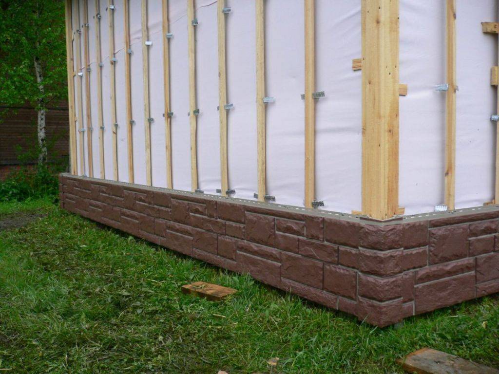 - Стартовая планка крепится на саморезы уровнем так, чтобы закрывался край фундамента. Ровности добиться поможет линия, проведенная на стене. Шаг гвоздей или саморезов для крепления составляет примерно 20-25 см.