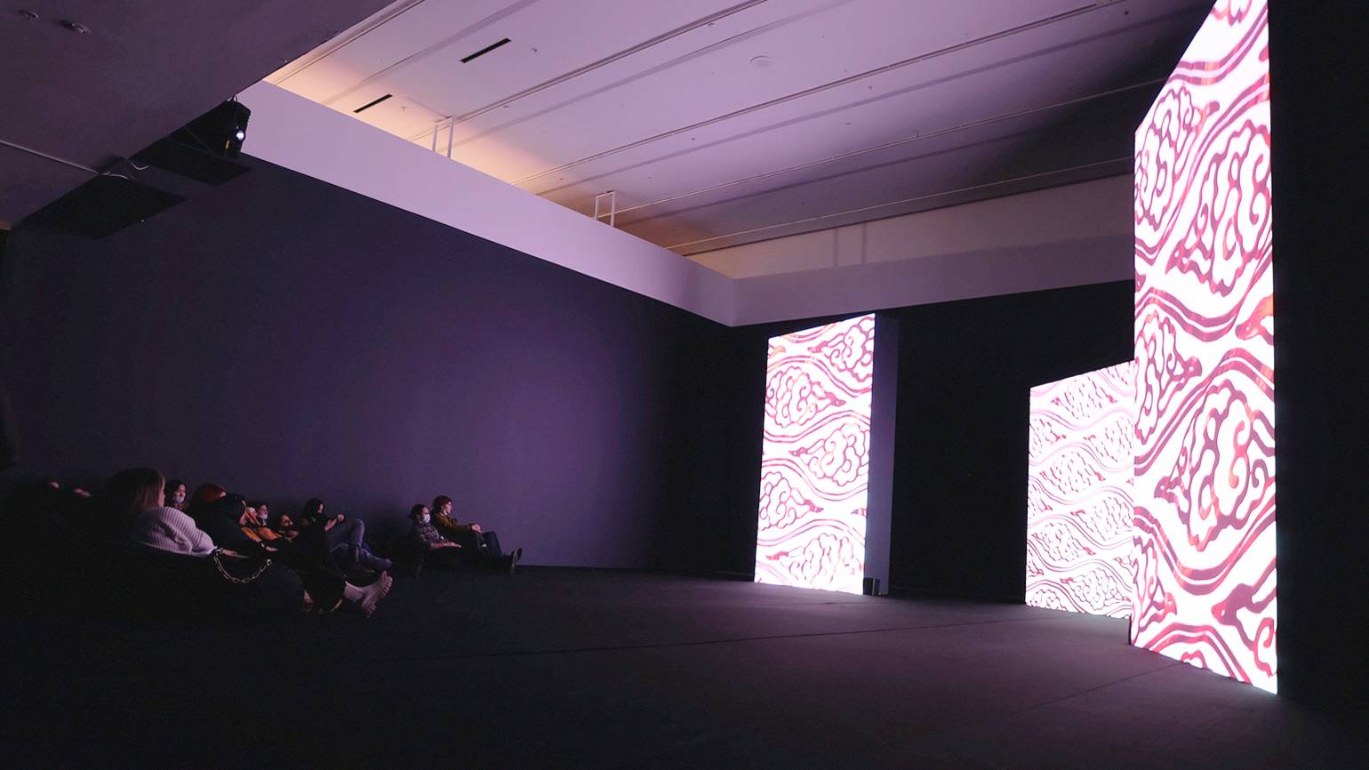 Оторваться от происходящего на трёх больших вертикальных экранах невозможно, несмотря на то, что видео идёт в тишине. Изначально «Турандот 2070» — декорации к опере «Турандот», премьера которой состоялась в 2019 году в Палермо, художники также делали для неё сценографию и костюмы. Благодаря инсталляции мы видим лишь толику работы над постановкой, но даже в таком формате можно оценить её величественность.