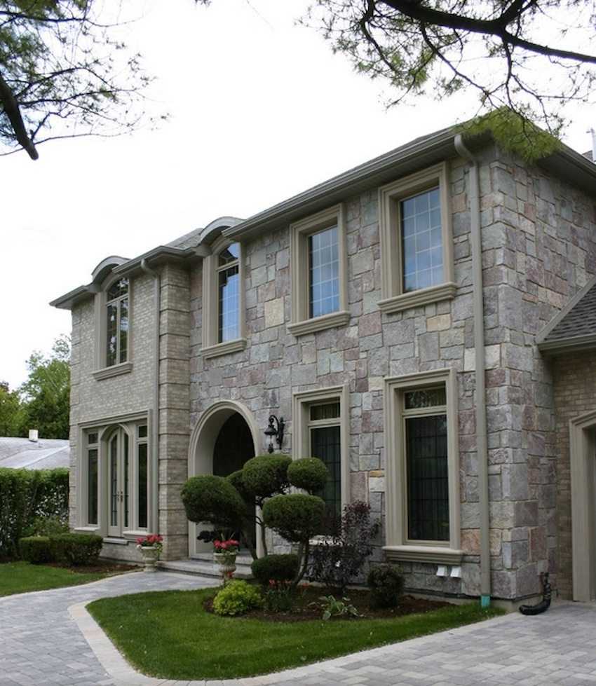 Отделка фасада «камнем» придает зданию монументальный вид.