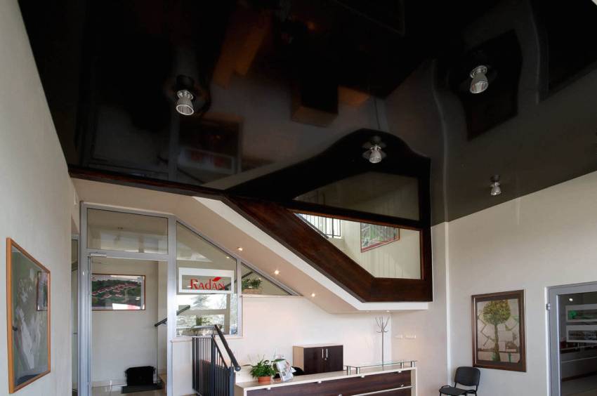 - Черный. Популярный цвет для создания современных нетривиальных интерьеров, особенно в глянцевом исполнении. Не следует только сочетать черные потолки с темными стенами, даже при создании готического интерьера.
