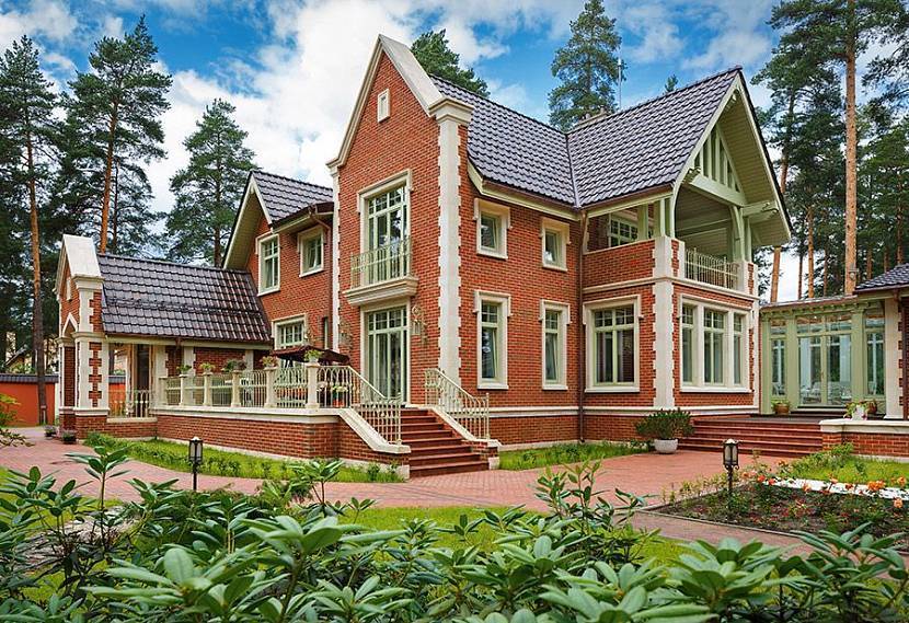 Такой стиль идеально подходит для строительства загородных коттеджей.