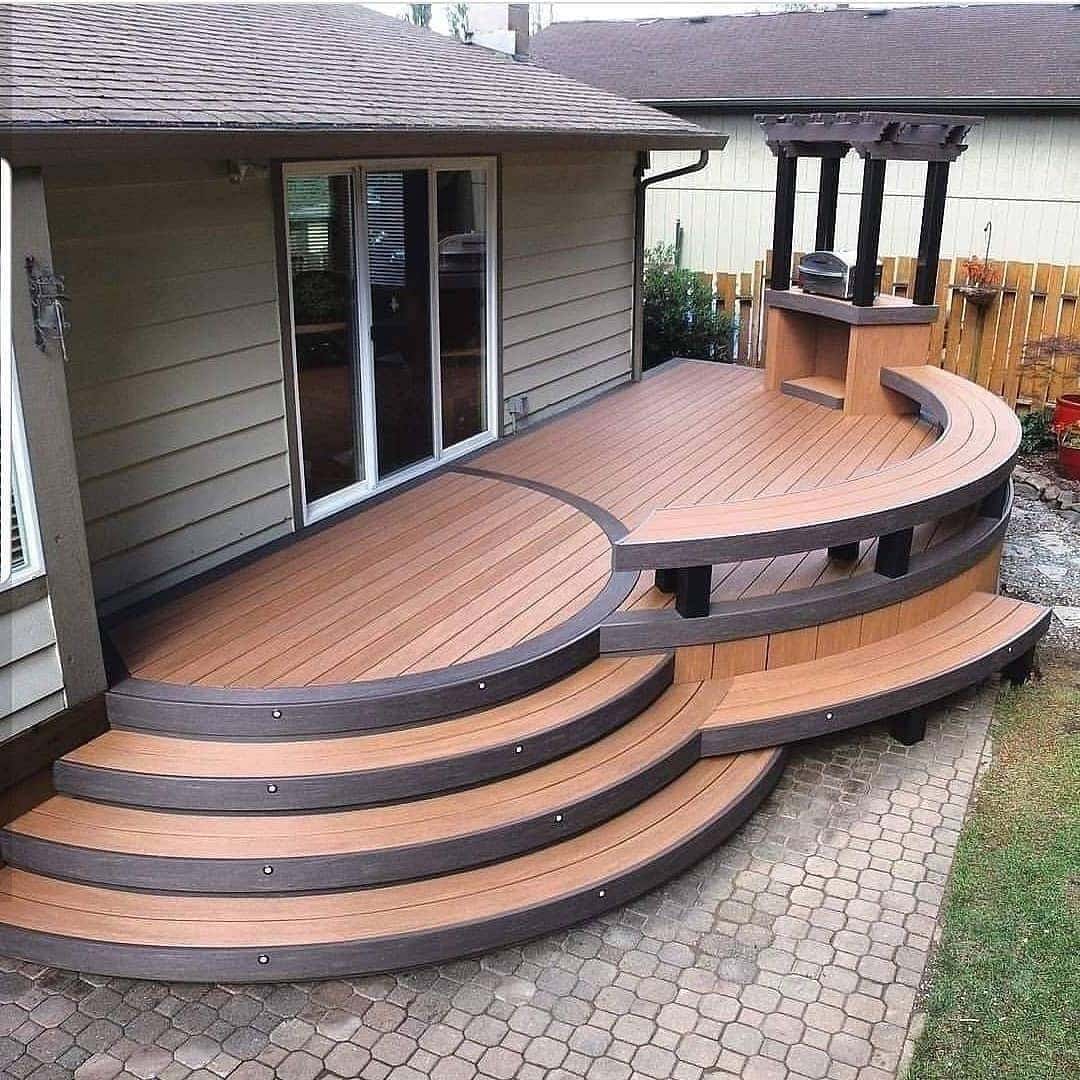 Этот материал по-прежнему остается фаворитом для создания крыльца. Оно подойдет практически к любому стилю (кроме современных дизайнов), мягко и послушно в использовании, не требует сложного ухода, тепло и комфортно при эксплуатации.